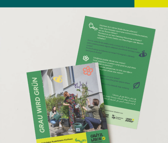 Das Grätzllabor ist ein Ort für Ideen. Hier können Bezirksbewohner*innen gemeinsam mit dem Grätzllabor-Team Projekte starten. Unter dem Schwerpunkt Begrünung, Beschattung und Kühlung des öffentlichen Raums begleiten wir Projekte, die den 15. Bezirk zu einem noch besseren Ort zum Leben, Arbeiten und Mitgestalten machen